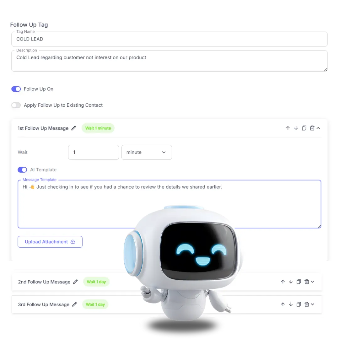 If the customer doesn’t reply, the system automatically sends a gentle reminder to keep the conversation moving.